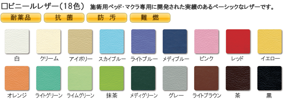 オリジナルレザー18色(耐アルコール、耐次亜塩素酸、抗菌、防汚、難燃、RoHS対応)